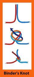 | Keywords: Binder's knot.png LadyofHats Binder's knot the diagram shows how to tie this knot it was based on a single image found on this http //www tpub com/1ase2/112 htm website it is a very simple knot so i deduced the rest i made it on adobe illustrator it was finished on the 10-feb-05 and i am placing it as public domain References The Ashley Book of Knots picture 1410 names given Overhand Bend Thumb Knot Openhand Knot Bend knots Climbing knots The Ashley Book of Knots | ||||