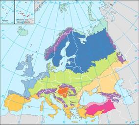 | Keywords: Biogeographical Regions Europe - Map (intl).png Biogeographical maps of Europe PD-EEA Source Full references in European Environment Agency Europe's environment the third assessment Environmental assessment report No 10 Luxembourg Office for Official Publications of the European Communities p 231 Date 05/2003 Relations http //reports eea eu int/environmental_assessment_report_2003_10/en http //dataservice eea eu int/dataservice/metadetails asp id 308 Type Map Version 5 Technical producer European Environment Agency http //www eea eu int Original data used to produce the analysis Biogeographical regions Europe 2001 The bio-geographic regions dataset contains the official delineations used in the Habitats Directive 92/43/EEC and for the EMERALD Network set up under the Convention on the Conservation of European Wildlife and Natural Habitats Bern Convention Published in the following report s Europe's environment the third assessment This is the third pan-European state of the environment report produced by the EEA It was prepared for the 'Environment for Europe' Ministerial Conference being held under the auspices of the UN Economic Commission for Europe in Kiev Ukraine on 21-23 May 2003 This assessment is the most comprehensive up-to-date overview currently available of the state of the environment on this continent In contrast to previous reports issued in 1995 and 1998 it covers for the first time the entire Russian Federation and the 11 other Eastern European Caucasus and Central Asian EECCA states The report also analyses how the main economic driving forces put pressure on the European environment and identifies key areas where further action is needed Owner en European Environment Agency SVG versions <gallery> Image Europe biogeography countries svg SVG with country borders Image Europe biogeography regions svg SVG without country borders Image Europe biogeography blank svg SVG country borders only blank </gallery> |