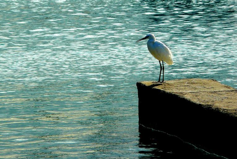 Keywords: bird animal nature animals heron little egret birds mirroring wait port sea lights sparkle water kai maritime south coast rest mediterranean turquoise travel holidays mallorca stand