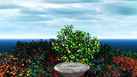 Keywords: bird bath fountain digital artwork colorful fantasy computer graphic animals