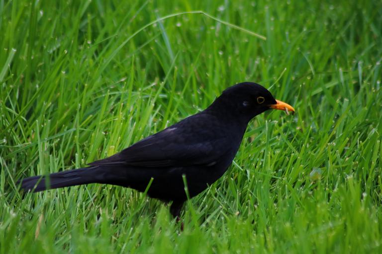 Keywords: bird blackbird true animal grass black nature spring eat summer worm bill eye wing tail meadow city casting