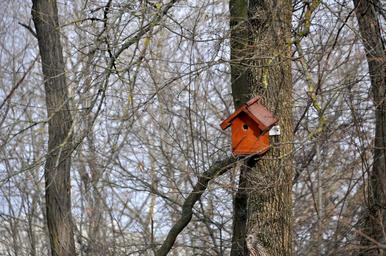 Keywords: bird house tree branches winter nature park forest birdhouse