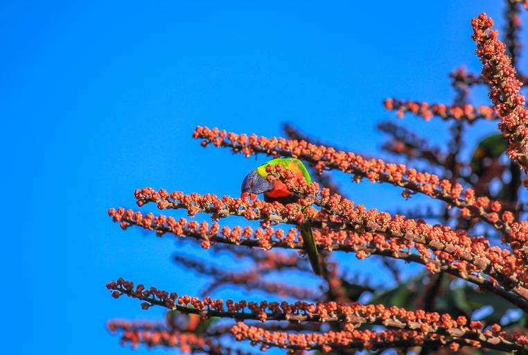 Keywords: bird parrot nature wildlife colorful bright blue berries red