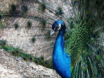 Keywords: bird peacock feather animal blue iridescent colorful plumage close pavo cristatus wheel wildlife photography bill shimmer peacock feathers color gloss