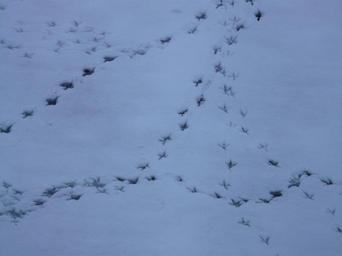 Keywords: bird tracks animal track reprint snow traces winter bird footprint footprint footprints white cold defrost thawing perpusillus