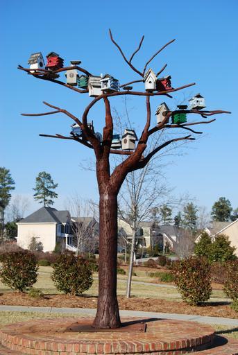 Keywords: birdhouses bird houses steel tree sculpture north carolina