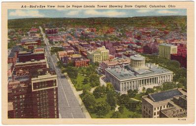 Keywords: columbus columbus, ohio columbusohio ohio postcard unused white border whiteborder aerial view aerialview city buildings citybuildings curt teich co. curtteichco unknown date unknowndate date unknown dateunknown aerial ohio state capitol ohiostatecapitol state capitol statecapitol ohio state house ohiostatehouse state house statehouse white border era whiteborderera photo border outdoor Description on front of card: Bird's-Eye View from Le Veque-Lincoln Tower Showing State Capitol, Columbus, Ohio No. in Series: A-6 Publisher: W.E. Ayres, 1049 Livingston Ave., Columbus, Ohio | Genuine Curteich-Chicago "C.T. Art-Colortone" post card by Curt Teich Co., Chicago, Illinois Estimated date: 1947-1963 (based on the buildings, building names, and addresses) Unused. Publisher Note: Curt Teich emigrated to Chicago in 1895. He had worked as a lithographer in Lobenstein, Germany. He founded the Curt Teich Company in 1898, concentrating on newspaper and magazine printing. He was an early publisher of postcards, but he didn't begin printing them himself until 1908. According to MetroPostcard.com, "As his competition dwindled, his sales expanded and his American factories would eventually turn out more postcards than any other in the United States." The company was best known for their wide range of advertising and postcards of North America. By the 1920s, it was producing so many postcards with borders that they became recognized as a type dubbed "White Border Cards," creating an "era." Curt Teich started using offset presses in 1907, but it took a number of years before he had offset presses made to his satisfaction, and many more years for him to perfect the method. His innovations in this printing technique directly led to the production of what we now call "linens" by the early 1930s. The company aided the war effort during the second world war by also printing many military maps. Curt Teich eventually turned management of the company over to his son, but he remained active in company operations throughout its history. Curt Teich died in 1974 and the family business was sold to Regensteiner Publishers who continued to print postcards at the Chicago plant until 1978 when the rights to the company name and processes were sold to the Irish company, John Hinde Ltd. Their California subsidiary now prints postcards under the name John Hinde Curteich, Inc. Source: www.metropostcard.com/publisherst.html Description on front of card: Bird's-Eye View from Le Veque-Lincoln Tower Showing State Capitol, Columbus, Ohio No. in Series: A-6 Publisher: W.E. Ayres, 1049 Livingston Ave., Columbus, Ohio | Genuine Curteich-Chicago "C.T. Art-Colortone" post card by Curt Teich Co., Chicago, Illinois Estimated date: 1947-1963 (based on the buildings, building names, and addresses) Unused. Publisher Note: Curt Teich emigrated to Chicago in 1895. He had worked as a lithographer in Lobenstein, Germany. He founded the Curt Teich Company in 1898, concentrating on newspaper and magazine printing. He was an early publisher of postcards, but he didn't begin printing them himself until 1908. According to MetroPostcard.com, "As his competition dwindled, his sales expanded and his American factories would eventually turn out more postcards than any other in the United States." The company was best known for their wide range of advertising and postcards of North America. By the 1920s, it was producing so many postcards with borders that they became recognized as a type dubbed "White Border Cards," creating an "era." Curt Teich started using offset presses in 1907, but it took a number of years before he had offset presses made to his satisfaction, and many more years for him to perfect the method. His innovations in this printing technique directly led to the production of what we now call "linens" by the early 1930s. The company aided the war effort during the second world war by also printing many military maps. Curt Teich eventually turned management of the company over to his son, but he remained active in company operations throughout its history. Curt Teich died in 1974 and the family business was sold to Regensteiner Publishers who continued to print postcards at the Chicago plant until 1978 when the rights to the company name and processes were sold to the Irish company, John Hinde Ltd. Their California subsidiary now prints postcards under the name John Hinde Curteich, Inc. Source: www.metropostcard.com/publisherst.html |