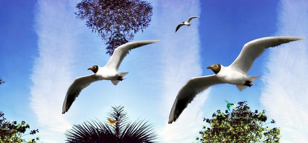 Keywords: birds flight freedom tropical birds clouds fly sky vegetation nature