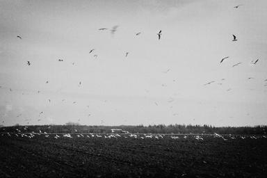 Keywords: birds flying fields rural countryside black and white