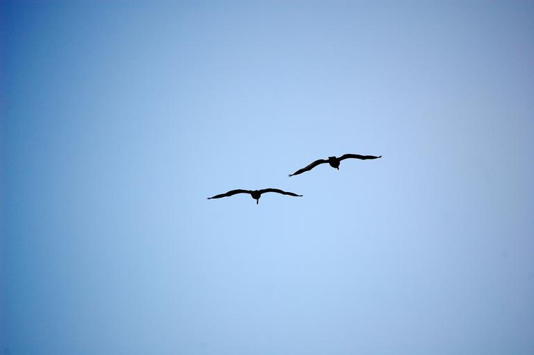 Keywords: birds silhouette blue sky seagull flying birds flying pair wildlife freedom seabird wings air two simple animal nature