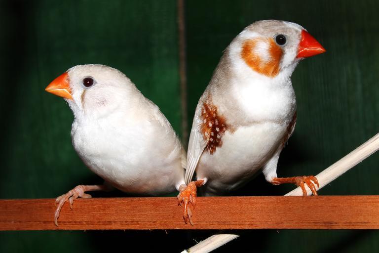 Keywords: birds zebra finches finch couple male female white aves avian fauna avifauna
