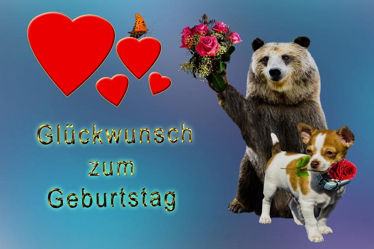 Keywords: birthday card birthday greeting greeting card congratulations digital greeting heart love dog bear rose bouquet happy birthday birthday wishes butterfly