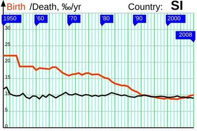 Keywords: BirthDeath 1950 SI.svg en The birth and death rates in Slovenia 1950 2008 ru Π ΠΎΠΆΠ΄Π°Π΅ΠΌΠΎΡΡΡ ΠΈ ΡΠΌΠ΅Ρ ΡΠ½ΠΎΡΡΡ Π² Π‘Π»ΠΎΠ²Π΅Π½ΠΈΠΈ 1950 2008 own Incnis Mrsi 2009-07-14 public domain File RNI 1950 SI svg Disclaimer The author of this graph gives no warranty and accepts no responsibility for its factual accuracy This graph is nothing but a visualization of data from http //demoscope ru/weekly/ias/ias05 php tim 0 cou 30 terr 1 ind 26 Submit OK http //demoscope ru/weekly/ias/ias05 php tim 0 cou 30 terr 1 ind 1 Submit OK which may be incomplete or error-prone If you find an error please correct the data in a <path d ¦ /> tag adding some comments about your reliable source and upload the file over Demographics of Slovenia Birth and death rates |