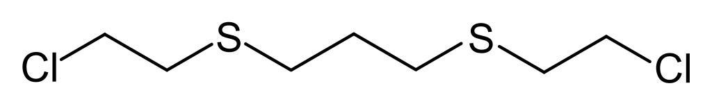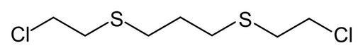 Keywords: Bis-1,3-(2-chlorethylthio)-n-propan.svg structure of Bis-1 3- 2-chloroethylthio -n-propane Struktur von Bis-1 3- 2-chlorethylthio -n-propan Own 2008-07-17 Ilgom talk Thioethers Sulfur mustard
