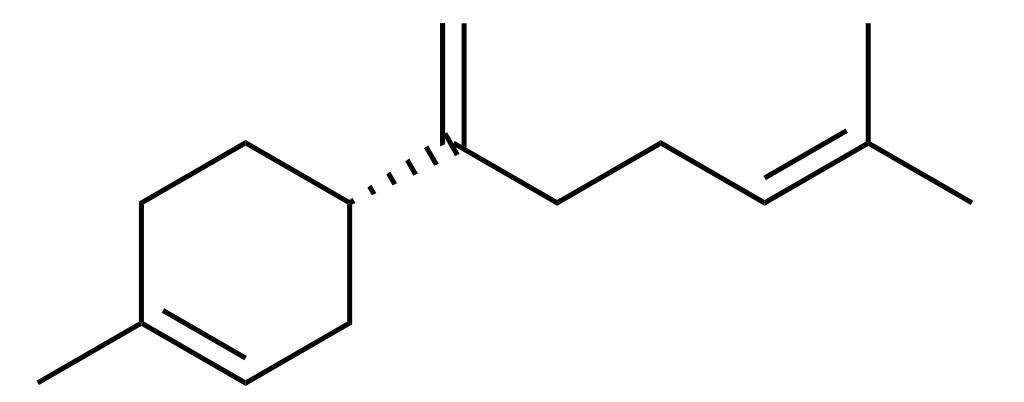 Keywords: Bisabolene-beta.svg validSVG Chemical structure of beta-bisabolene Own 15 15 4 November 2010 UTC Edgar181 <span class signature-talk >talk</span> Bisabolenes
