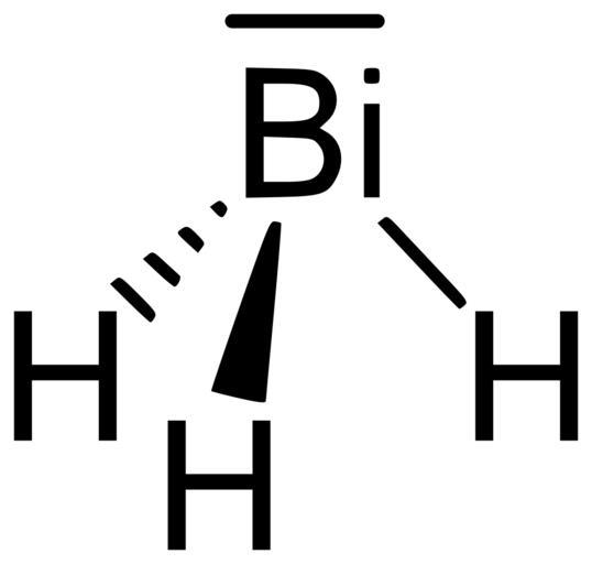 Keywords: Bismuthine.svg en Bismuthine; bismuthane; trihydridobismuth; hydrogen bismuthide; bismuth trihydride de Bismutan; Wismutwasserstoff; Bismutwasserstoff own Yikrazuul 05 04 2010 Bismuthine