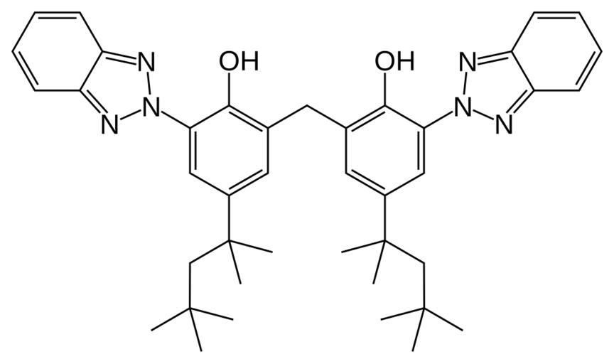| Keywords: Bisoctrizole.svg validSVG Skeletal formula of bisoctrizole USAN; INCI methylene bis-benzotriazolyl tetramethylbutylphenol Created using http //www acdlabs com/download/chemsk html ACD/ChemSketch 10 0 http //www inkscape org Inkscape and http //www vim org vim Own Fvasconcellos 2008-08-10 Benzotriazoles Phenols Diphenylmethanes Sunscreening agents |