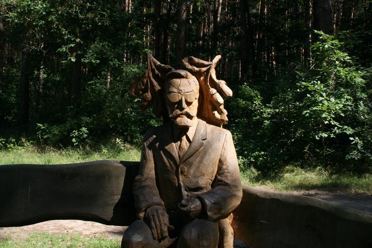 Keywords: bison reserve damerower werder müritz wood sculpture nature man statue artwork figures