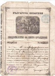 Keywords: Bitolya Bulgarian Municipality Birth Certificate 1883.jpg К ъщелно свидетелство от Битолската бълга ска община с подписа на поп Став е scanned 1883-02-02 Bulgarian Exarchate PD-old Bulgarian Exarchate History of Bitola Bitolya Bulgarian Municipality Diocese of Prespa and Pelagonia Baptism certificates of Bulgaria