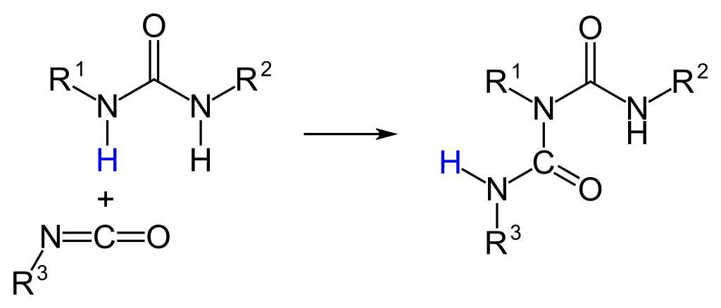 Keywords: Biurete.svg de Bildung von Biuret-Gruppen own Roland chem 2014-11-28 Polyurethanes Cc-zero