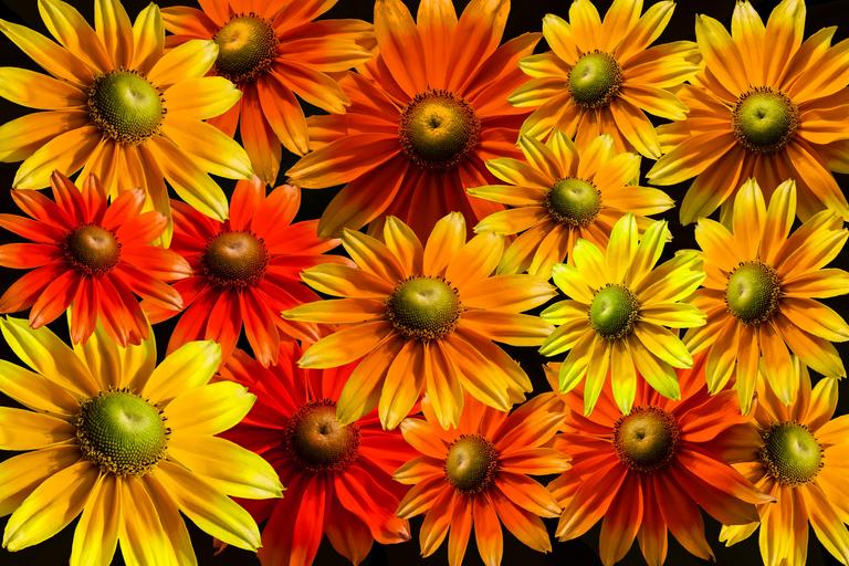 Keywords: blütenmeer bloom sun hat gerbera colorful flowers summer sea of flowers yellow orange red