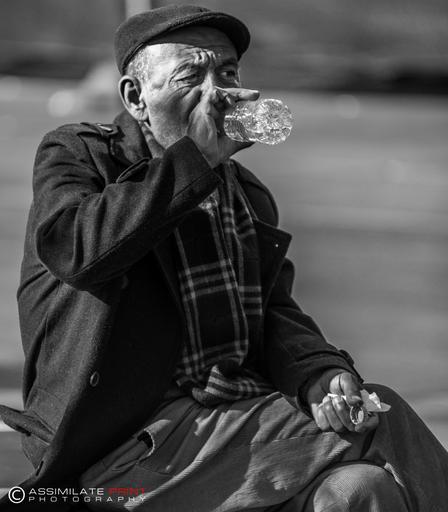 Keywords: black black white old man father dad person face gentleman portrait people persons age down-and-out bum alcoholism hobo tramp drinking seniors