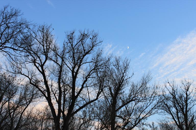 Keywords: black crows fall flock moon sky trees autumn birds