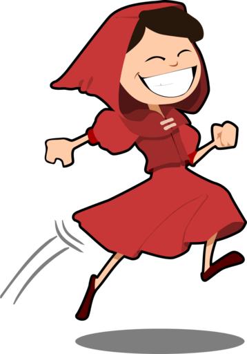 Keywords: black hair cartoon cheer cheerful closed eyes cute fairy tale female fist game girl grin happy hop jolly jump jumper jumping jumps pale red riding hood shoes skirt smile teeth white teeth