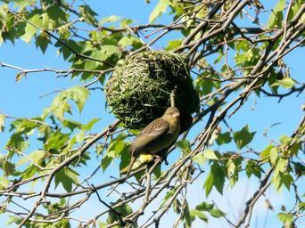 Keywords: black masked weaver bird nest grass clever handicraft