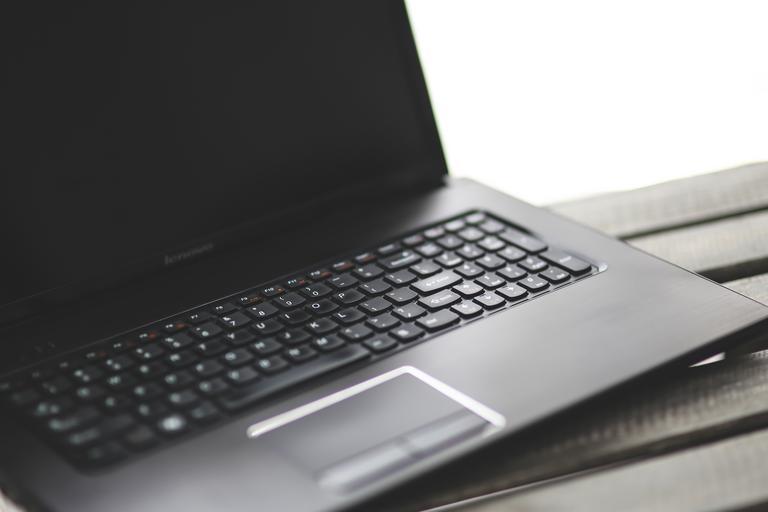 Keywords: black notebook laptop keyboard computer technology work free time connection internet