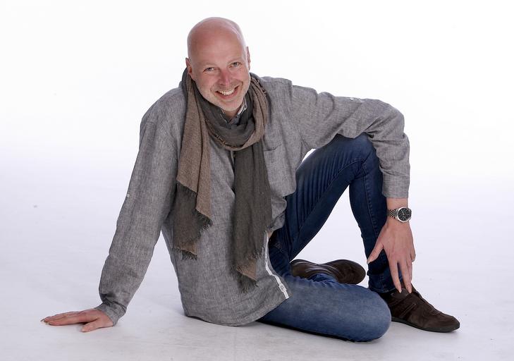Keywords: black sitting scarf locker jeans businessman laughing elegant standing male person senior model skinny jeans fashion