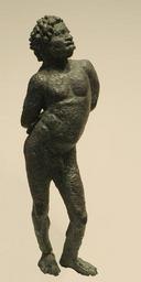 | Keywords: Black slave Louvre Br361.jpg Black youth with hands bound behing his back Found in the Fayum near Memphis Egypt bronze 2nd “1st century BC Adolescent noir aux mains liées Statuette en bronze trouvée dans la région du Fayoum non loin de Memphis Égypte IIe ou Ier siècle av J -C H 13 2 cm 5 in Museum Louvre Department of Greek Etruscan and Roman Antiquities Sully first floor room 32 object history credit line Purchase 1892 accession number Br 361 Jastrow 2005 other versions Atelier graphique Ancient Greek bronze statuettes Hellenistic sculptures Ancient Egyptian art from Faiyum Slavery in ancient Greece Statues of nude standing boys Africans in ancient Greek art Greek antiquities in the Louvre - Room 32 Statues of people of Africa |