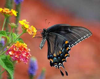 Keywords: black swallowtail butterfly swallowtail papilio insect flower nectar summer fly proboscis wings colorful garden lantana beauty colorfuil