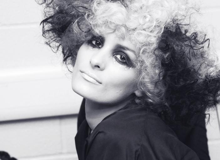 Keywords: black white hair young beautiful woman female beauty face model fashion attractive pretty eyes sexy style hairstyle make-up smile avant garde backstage show hairshow curly hair