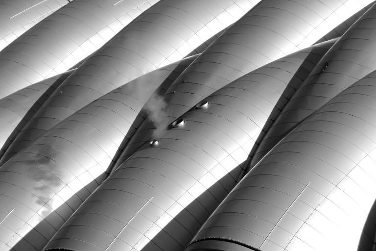 Keywords: black and white photo architecture building black and white roof structure contrast modern city pattern roofs cityscape cold effect light dark