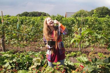Keywords: blackberries blackberry picking tests young woman long hair gardening