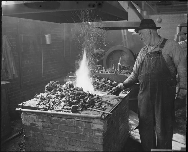 Keywords: Blacksmith and his forge. The Pocahontas Corporation, Mines 33-34, Bishop, Tazewell County, Virginia. - NARA - 541077.tif Scope and content General notes 541077 Local identifier 245-MS-2050L Department of the Interior Solid Fuels Administration For War 04/19/1943 - 06/30/1947 NARA-Author Lee Russell 1903-1986 Photographer 2489414 <br /> Still Picture Records Section Special Media Archives Services Division NWCS-S National Archives at College Park 8601 Adelphi Road College Park MD 20740-6001 1946-08-27 Record group Record Group 245 Records of the Solid Fuels Administration for War 1937 - 1948 Record group ARC 572 Photographs of the Medical Survey of the Bituminous Coal Industry compiled 1946 - 1947 Series ARC 540230 File unit File unit ARC Variant control numbers NAIL Control Number NWDNS-245-MS-2050L yes Other versions <gallery> File Blacksmith_and_his_forge _The_Pocahontas_Corporation _Mines_33-34 _Bishop _Tazewell_County _Virginia _-_NARA_-_541077 tif tif File Blacksmith_and_his_forge _The_Pocahontas_Corporation _Mines_33-34 _Bishop _Tazewell_County _Virginia _-_NARA_-_541077 jpg jpg </gallery> NARA-cooperation PD-USGov NARA TIF images with categorized JPGs Virginia Coal mining in Appalachia August 1946 in the United States Bib overalls Black and white photographs Black and white photographs of men at work Black and white photographs of standing men Virginia Black and white photographs of the United States in the 1940s Black and white photographs of Virginia Blacksmiths from the United States Virginia Males with gloves Men at work in Virginia Men facing left and looking left Men with hats 1946 in Virginia People of Virginia People of the United States in 1946 Tazewell County Virginia 20th-century men of the United States 27 August |