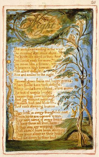 | Keywords: Blake Night1 aa p20 300.jpg Artwork en Songs of Innocence and of Experience object 20 Bentley 20 Erdman 20 Keynes 20 Night Institution William Blake Archive http //www blakearchive org/exist/blake/archive/object xq objectid songsie aa illbk 20 java no Institution Fitzwilliam Museum PD-old-100 Songs of Innocence and Experience - Copy AA 20 Songs of Innocence - Night |