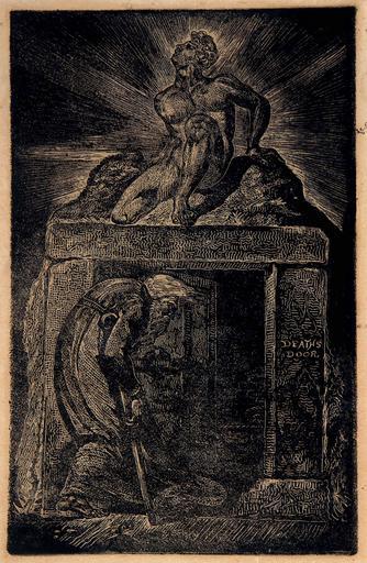| Keywords: Blake's plate for Blair's Grave 1805 (white line-.png A plate given the title 'Deaths Door text found on the tomb in the image which was intended for the 1805 publication of Blair's poem The Grave white line and hand tinted etching Collection of Robert N Essick Institution William Blake Archive Converted to PNG Original scan in the at http //www blakearchive org/exist/blake/archive/copyinfo xq copyid esxiii 1 id esxiii 1 Full provenance is assumed to begin with an acquisition from Blake by Samuel Palmer 1805 Creator William Blake PD-old-100 Frontispiece for The Sanity of William Blake The Grave |