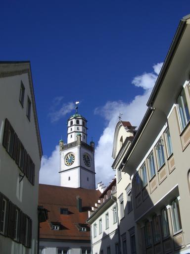 Keywords: blaser tower ravensburg bowever tower row of houses sky blue
