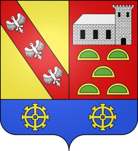 Keywords: Blason de la ville de Montzéville (Meuse).svg blazon of en city of Montzéville Montzéville Meuse Montzéville fr Parti d ™or à la bande de gueules chargée de trois alérions d ™argent et de gueules au bâtiment à la tour d ™argent à senestre maçonné et ouvert de sable soutenu par cinq tertres de sinople bordés d ™or 2 1 2 Le tout soutenu par une champagne d ™or chargée de deux roues de moulin d ™or spax89 Projet Blasons Own spax89 v -Blasons other versions Montzéville Alerions in heraldry Coats of arms of cities in Meuse SVG coats of arms of France Derivatives of the Coat of arms of Lorraine DEFAULTSORT Montzéville |