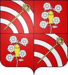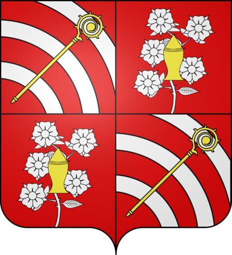 Keywords: Blason de la ville de Belles-Forêts (Moselle).svg blazon of en city of Belles-Forêts Belles-Forêts Moselle Belles-Forêts fr Ecartelé au premier et au quatrième de gueules à trois bandes courbées d'argent une crosse d'or brochant en barre ; et au deuxième et au troisième de gueules au rosier de cinq roses d'argent chargé en coeur d'un vase à parfum d'or spax89 Projet Blasons Own spax89 v -Blasons other versions Belles-Forêts Coats of arms of cities in Moselle SVG coats of arms of France DEFAULTSORT Belles-Forêts
