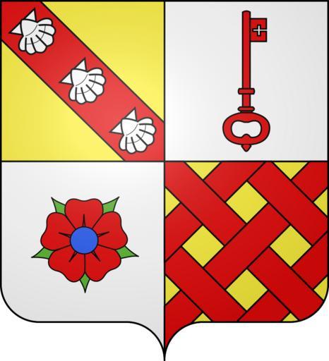 | Keywords: Blason de la ville de Frauenberg (Moselle).svg blazon of en city of Frauenberg Frauenberg Moselle Frauenberg fr Écartelé au premier d'or à la bande de gueules chargée de trois coquilles d'argent au deuxième à la clef contournée de gueules au troisième d'argent à la rose de gueules boutonnée d'azur et pointée de sinople au quatrième d'or fretté de gueules spax89 Projet Blasons Own spax89 v -Blasons other versions Frauenberg Moselle Or fretty gules Coats of arms of cities in Moselle SVG coats of arms of France DEFAULTSORT Frauenberg |
