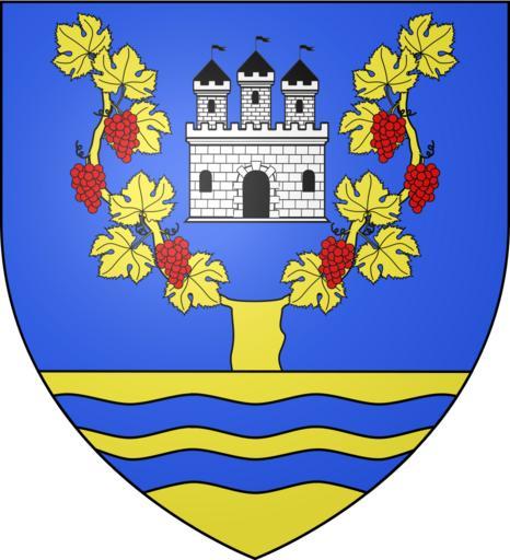 Keywords: Blason de la ville de Noizay (37).svg blazon of en city of Noizay Noizay Indre-et-Loire Noizay Indre-et-Loire fr D'azur au cep de vigne de deux sarments tigés et feuillés d'or fruités chacun de trois grappes de raisin de gueules enfermant un château d'argent ouvert ajouré et maçonné de sable donjonné de trois tourelles aussi d'argent couvertes et girouettées aussi de sable ledit cep posé sur une champagne aussi d'or chargée d'une jumelle ondée du champ spax89 Projet Blasons Own spax89 v -Blasons other versions Noizay Blason Fesses gemelles wavy in heraldry Coats of arms of cities in Indre-et-Loire SVG coats of arms of France Terraces in base Or DEFAULTSORT Noizay