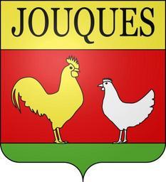 | Keywords: Blason de la ville de Jouques (13).svg  blazon of en city of Jouques Jouques Bouches-du-Rhône Jouques Bouches-du-Rhône fr De gueules à un coq d'or à dextre et une poule d'argent à senestre affrontés sur une terrasse de sinople et un chef d'or chargé du mot JOUQUES en caractères de sable it di rosso al gallo d'oro a destra e una gallina d'argento a sinistra afrontati su una terrazza di verde; al capo d'oro caricato dalla parola JOUQUES in lettere maiuscole di nero spax89 Projet Blasons Own spax89 v -Blasons other versions Cocks in heraldry Jouques Coats of arms of cities in Bouches-du-Rhône SVG coats of arms of France DEFAULTSORT Jouques |
