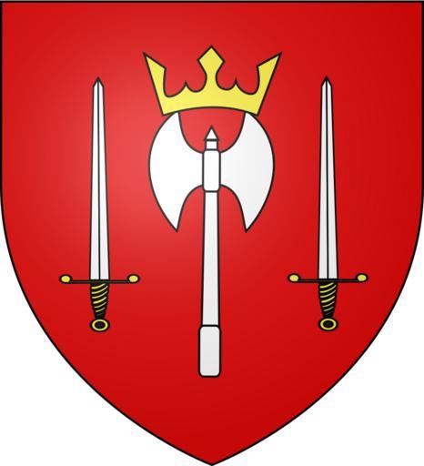 Keywords: Blason ville fr Nibas (Somme).svg La commune porte depuis délibération de 1980 et sans cependant en faire usage de gueules à la hache franque d'argent couronnée d'or et accostée de deux épées hautes d'argent garnies d'or Ce blason s'inspire pour partie du blason de la famille de Nibas de gueules à trois épées hautes d'argent garnies d'or rangées en fasce seigneurs du village du 13e au 15e ; la hache franque couronnée centrale est une allégorie de la bataille de Saucourt-en-Vimeu hameau de Nibas que remporta le roi Louis III sur les Normands en 881 <br> Avec mes amitiés<br> Jacques Dulphy Blason de la ville de Nibas Somme de gueules à la hache franque d'argent couronnée d'or et accostée de deux épées hautes d'argent garnies d'or Own 3-6-2007 Ssire DEFAULTSORT Nibas Nibas Blason Coats of arms of cities in Somme Swords in heraldry Argent gules Or in heraldry |