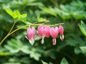 Keywords: bleeding hearts pink flowers nature garden plants green leaves hearts summer branches