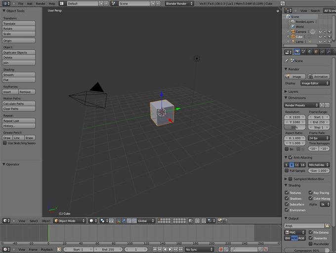 Keywords: Blender-2.57.jpg en This is the default screen of Blender 2 57a own JamesNZ 2011-07-02 Cc-zero Blender 3D screenshots