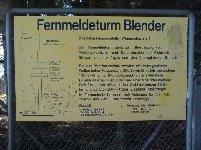 Keywords: Blender - Schild.JPG de Schild am Fuß des Turms auf dem Blender Berg <br>en sign at the socket of the Blender mountain Own 2007-02-17 Pionic Sender Blender