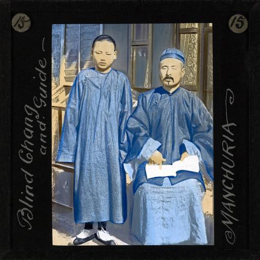 Keywords: Blind Man and Guide, Manchuria, ca. 1882-ca. 1936 (imp-cswc-GB-237-CSWC47-LS8-015).jpg en <br> Blind Man and Guide Manchuria ca 1882-ca 1936 Blind Chang and Guidea Photograph of a blind man and a young boy who is his guide Both are dressed in blue Chinese traditional robes The blind man is seated with a book on his knee His guide is standing beside him ; This belongs to a series of Church of Scotland Foreign Missions Committee lantern slides relating to the Scottish missionary Dugald Christie Dugald Christie was born in Glencoe in Scotland and studied medicine under the auspices of the Edinburgh Medical Missionary Society In 1882 along with his first wife Elizabeth he went to Manchuria to work as a medical missionary of the United Presbyterian Church of Scotland He worked initially in Newchang and later moved to the capital of Mukden where he opened Manchuriaas first hospital in 1884 In 1912 he established Mukden Medical College Dugald Christie retired in 1923 and died in Edinburgh in 1936 Photographer Unknown Filename imp-cswc-GB-237-CSWC47-LS8-015 tif Coverage date 1882/1936 Part of collection International Mission Photography Archive ca 1860-ca 1960 Geographic subject region Manchuria Type images Part of subcollection Photographs from the Centre for the Study of World Christianity University of Edinburgh U K ca 1900-ca 1940s Repository name Centre for the Study of World Christianity Archival file impaunpub_Volume7/1679 url Repository address The University of Edinburgh School of Divinity New College Mound Place Edinburgh EH1 2LX United Kingdom Geographic subject country China Format aacr2 1 lantern slide 8 x 8 cm Geographic subject continent Asia Rights Contact the repository for details Part of series Dugald Christie LS8 Repository email divinity-CSWC ed ac uk Subject lcsh Keyword Blindness; Young men Date created 1882/1936 Publisher of the digital version University of Southern California Libraries Subject aat genre group portraits Format aat lantern slides Legacy record ID impa-m69106 Access conditions http //www ed ac uk/schools-departments/divinity/research/centres/world-christianity/collections-resources File GB 237 CSWC47/LS8/15 1882/1936 author http //digitallibrary usc edu/cdm/ref/collection/p15799coll123/id/64798 PD-old-70-1923 Magic lantern images Images from USC Digital Library uploaded by Fæ International Mission Photography Archive ca 1860-ca 1960 |